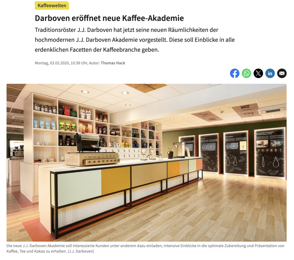 Die Eröffnung der neuen J.J. Darboven Akademie war ein Meilenstein für das Unternehmen und für mich persönlich ein aufregender Karriereschritt. Dieser Artikel der HOGAPAGE fängt die Aufbruchsstimmung dieses Tages perfekt ein. Er berichtet nicht nur über die Fakten – die modernen Räumlichkeiten, die neueste Technik und das erweiterte Schulungsangebot – sondern auch über die Philosophie dahinter. In meiner neuen Doppelrolle als Akademie- und Innovationsmanager wurde mir die spannende Aufgabe zuteil, die Brücke zwischen der reichen Tradition des Hauses Darboven und den Zukunftstrends der Kaffeewelt zu schlagen. Der Artikel zitiert meine Überzeugung, dass ein hochwertiges Produkt nur die halbe Miete ist. Erst die Leidenschaft und das handwerkliche Können in der Zubereitung schaffen wahre Genussmomente. Genau diesen Enthusiasmus wollten wir in der Akademie vermitteln. Das Ziel war es, Gastronomen nicht nur zu schulen, sondern sie zu inspirieren und ihnen das nötige Rüstzeug an die Hand zu geben, um ihre Gäste jeden Tag aufs Neue zu begeistern. Die Berichterstattung in einem so relevanten Branchenmedium wie der HOGAPAGE war eine tolle Bestätigung für die Relevanz dieses Ansatzes und ein fantastischer Startschuss für ein schulungsintensives und innovatives Jahr.